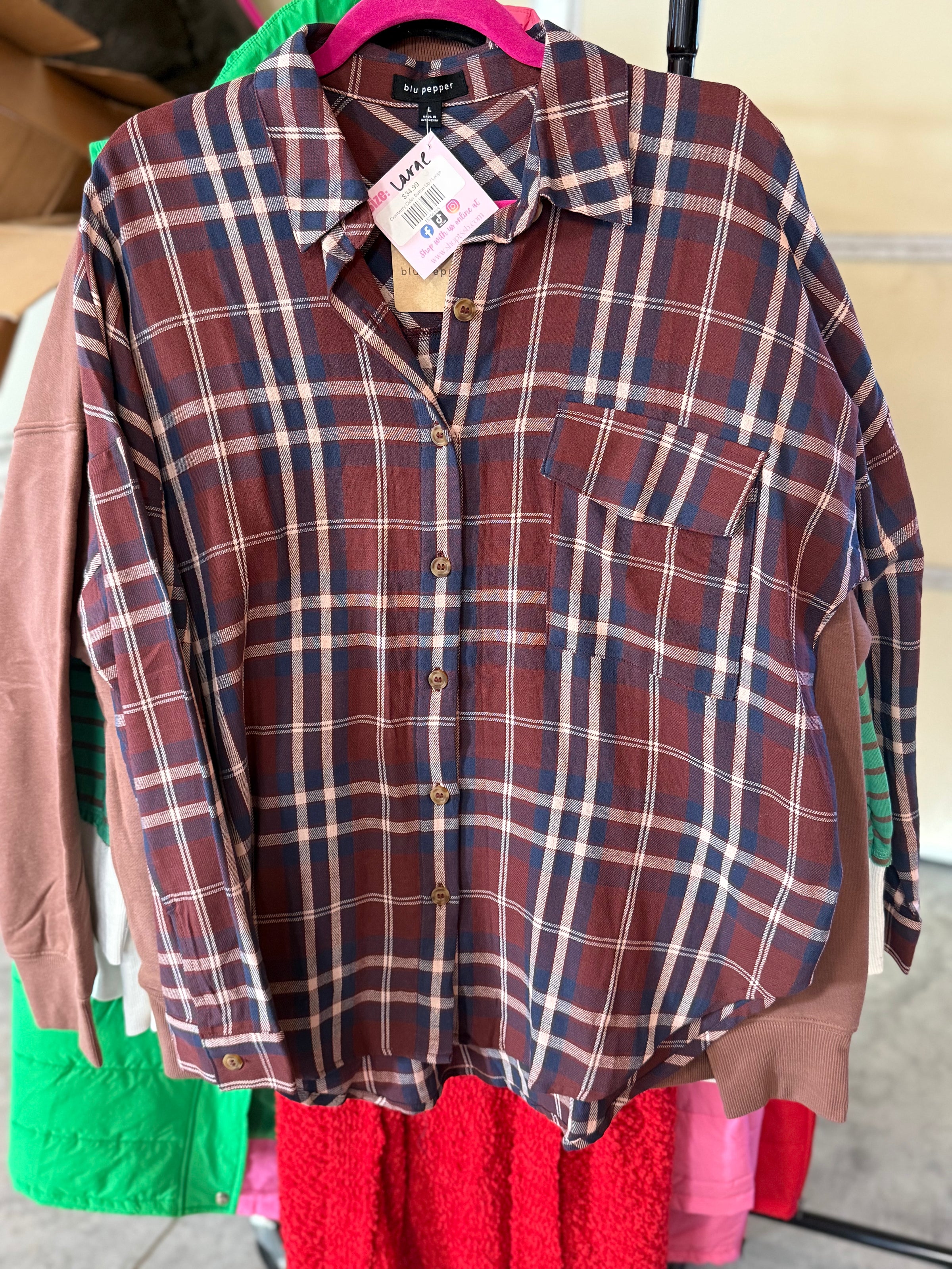 The Cranberry Cider Button Up is that perfect soft + lived-in plaid we all love.