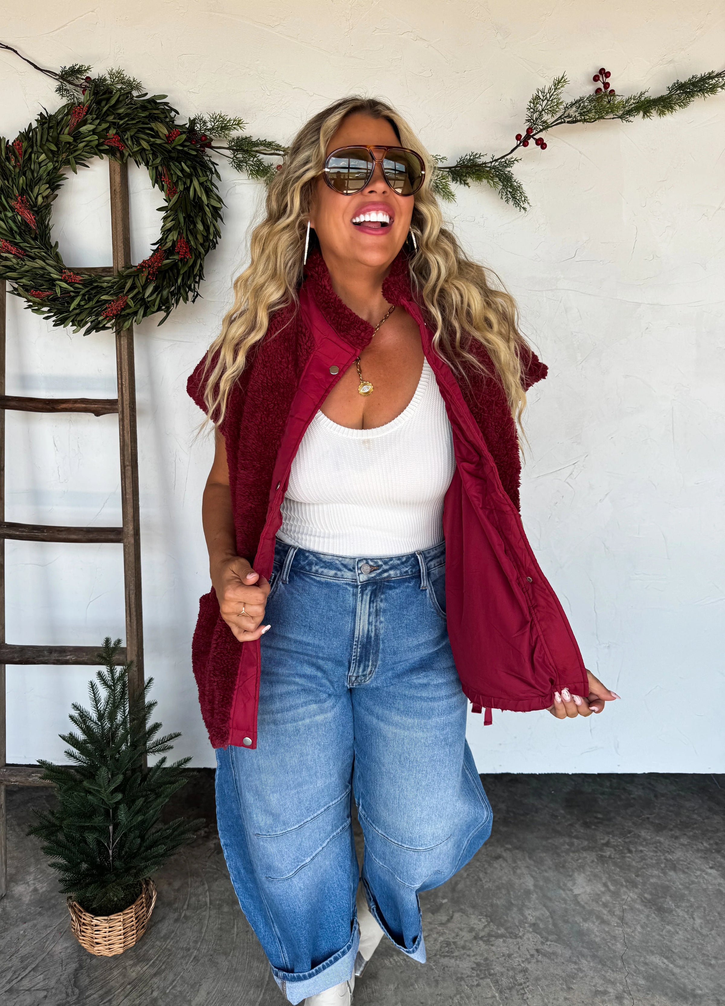 Meet your new statement layer of the season — a luxe, ultra-soft plush vest that gives major high-end designer vibes without the designer price tag. The inside features a quilted lining for warmth and structure, while the outside brings all the cozy texture and bold personality your fall + winter wardrobe needs.